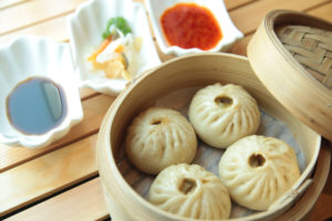 • Farcire le focaccine e cuocerle adagiati su un quadrato di carta oleata, unta con olio di sesamo, posta su un cestello forato e cotta al vapore per 20 minuti