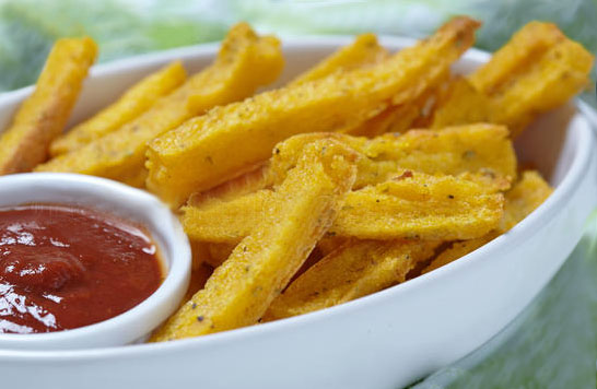 - Friggere le fette in olio bollente, asciugare su carta assorbente, salare e servire calda.